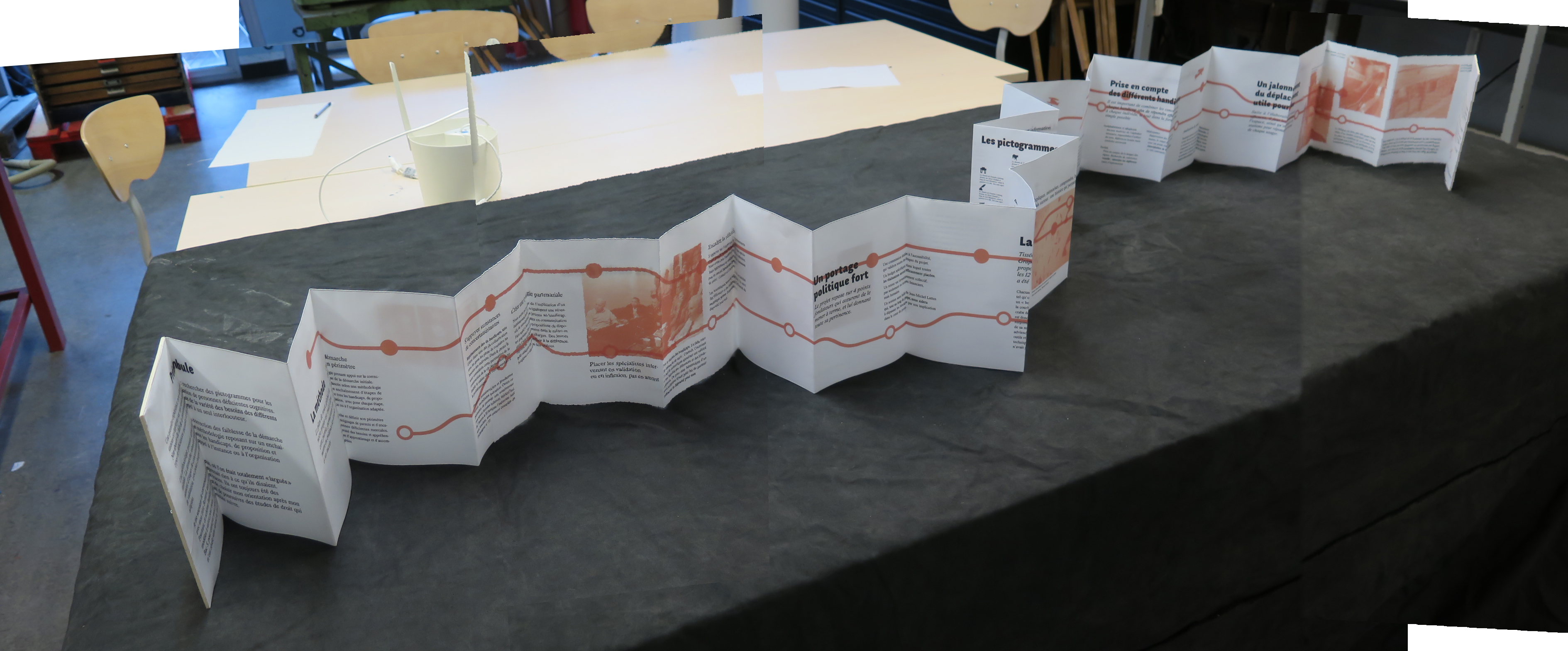L'édition se pésente sous forme d'un leporello, un grand dépliant de 24 pages. Le verso est mis en page comme un livre classique, le recto peut être lu normalement mais gagne en sens lorsqu'il est utilisé comme ue frise (étapes à suivre si l'on veut reproduire le projet de Tisséo)