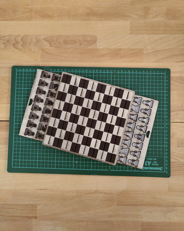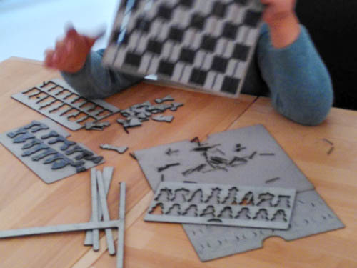 Le principe de construction est realativement simple : un sandwich de couches de carton. À chaque étape j'explique les choix d'épaisseur, de jeu entre les pièces ou bien quelle contrainte a guidé tel ou tel choix. Le modèle a également pour lui de générer un minimum de chutes de matériau.