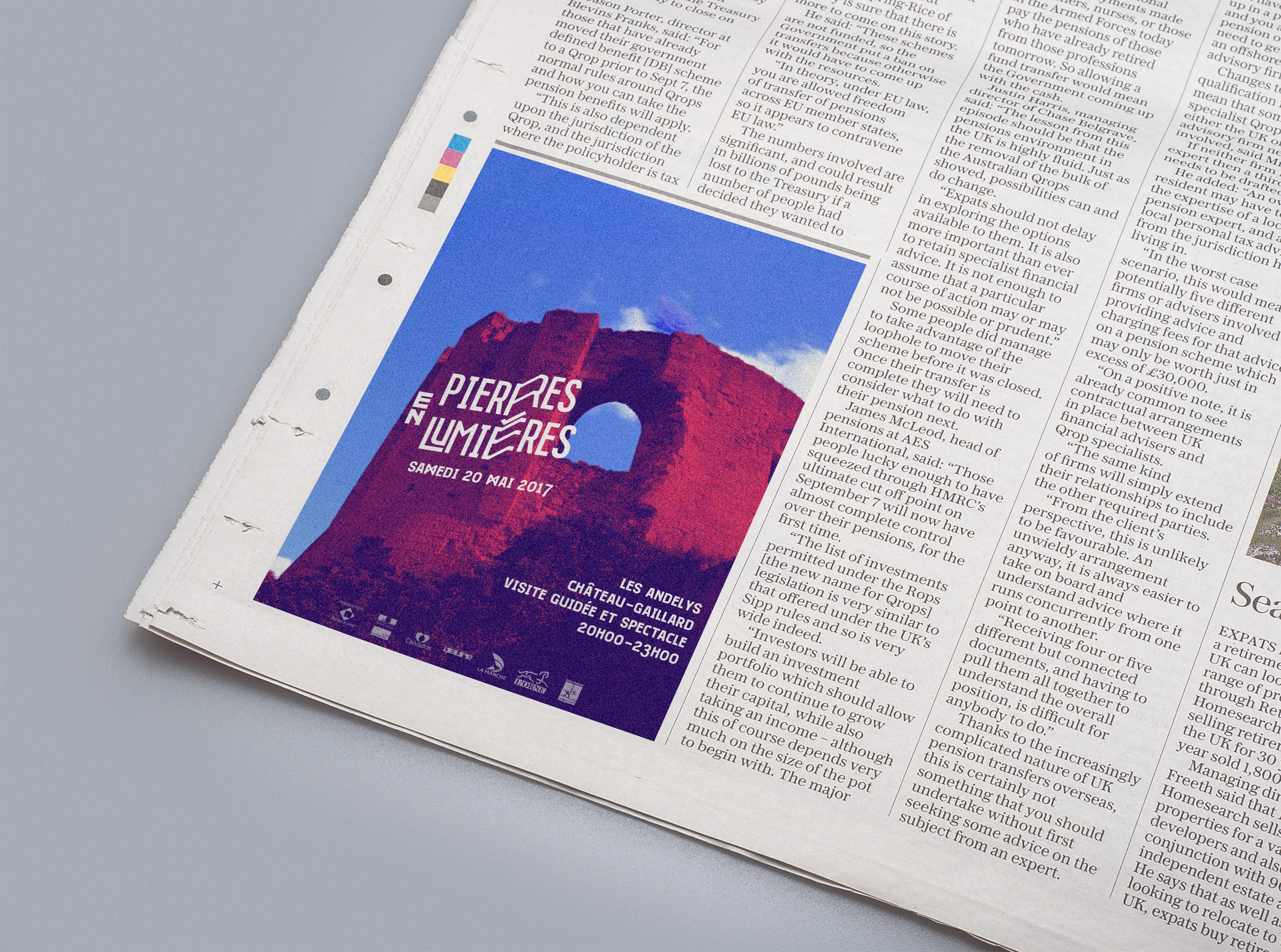 identité, afficheProjet de synthèse pour un évènement d’animation de patrimoine dans la région normande. La principale spécificité de Pierre en Lumière est que chaque illumination est organisée et gérée par les propriétaire de ce patrimoine.